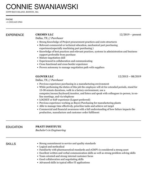 Purchaser Resume Examples . Top cv skills craft an exceptional purchaser resume with our online builder. Our purchaser resume example will provide you with valuable insight into how to effectively showcase your skills and experience.